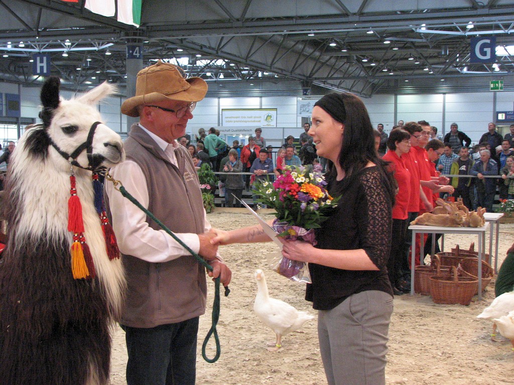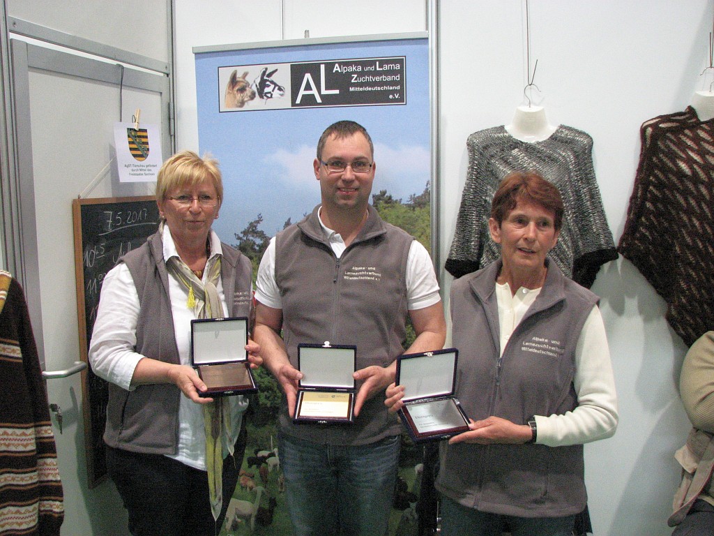 Vier anstrengende aber erfolgreiche Tage der agra 2017, der größten mitteldeutschen Landwirtschaftsausstellung mit 1183 Ausstellern aus 14 Ländern und 50.450 Besuchern,, liegen hinter uns. Mit 8 Ausstellern und 15 Tieren waren wir dieses Jahr wieder dabei. Jeden Tag gab es Tierschauen und Rassepräsentationen, an denen wir unsere Tiere präsentieren durften. An den Boxen der Tiere kam es zu vielen interessanten Fach- und Verkaufsgesprächen zu den Tieren. Am Stand ging es dann eher um die Produkte aus der Wolle. Im Freigelände liefen unsere Tiere Werbung für die nächste Tierschau, sie wurden umringt von Besuchern, die alle ein Foto wollten und hier und da gab es was zu trinken umsonst! Am Sonntag, den 7. Mai hatten wir unsere Sondertierschau, zu der wir wieder Auszeichnungen vornehmen konnten. Herr Lothar Jander erhielt den agra-Preis 2017. Ebenso konnten wir drei Plaketten für züchterische Leistungen vom Staatsministerium für Umwelt, Landwirtschaft und Geologie übergeben. Familie Kleinstück erhielt diese in Bronze, Familie Mann in Silber und Alexander Körner in Gold. Herzlichen Glückwunsch an dieser Stelle an alle Preisträger und Danke an alle Austeller, Helfer und Organisatoren.