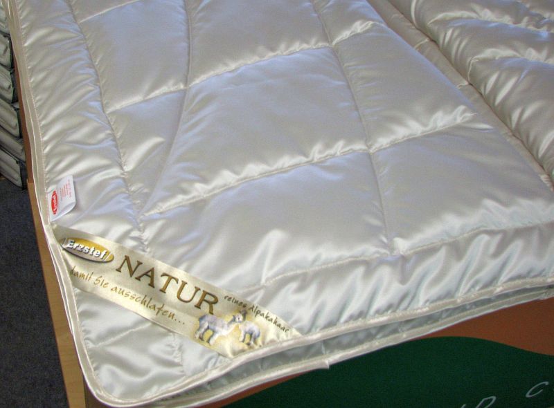 Für die Verarbeitung zu Steppbetten wird speziell die kurze Faser verwendet. Die Fasern werden nur im gewaschenen Zustand verarbeitet. Die Auftragsabwicklung, sowie die Faserannahme wird von der Firma ERZSTEF organisiert. Das Waschen der Fasern kann man selbst machen oder es ist nach vorheriger Absprache möglich mit zu organisieren. Als Inlett werden reine Baumwollstoffe in Feinperkal, Batist und Feinperkal kbA angeboten. Die sehr feinen Stoffe sind athmungsaktiv und verhindern Haardurchbrüche. Wer einmal in Alpakabetten geschlafen hat, weiß was sie wert sind. Jeder erhält die Steppdecken von den Fasern seiner Tiere zurück. Die Faserannahme und Auftragsabwicklung ist ganzjährig möglich. Die Firma ERZSTEF verarbeitet auch andere Tier- und Pflanzenfasern, somit kann bei Bedarf jederzeit eine Beimischung von Schafwolle, Kamelhaar oder anderem erfolgen. Fordern Sie die neuen Preislisten mit einer großen Auswahl an Größen und Füllungen für die Betten und Kopfkissen an, mit einem Sonderrabatt für Vereinsmitglieder des ALZVM.