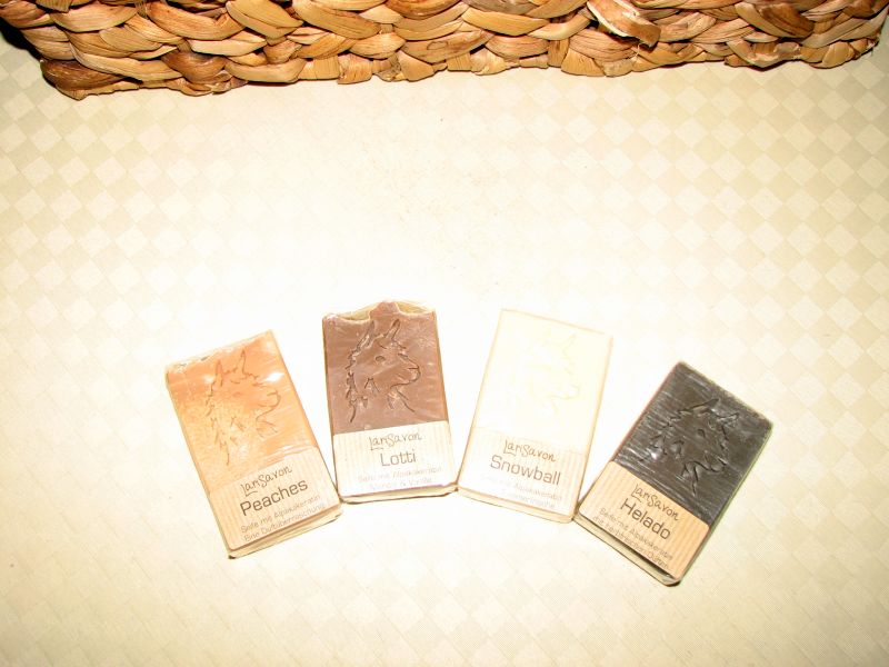 Es gibt die Möglichkeit aus 100 g gewaschener Alpaka- oder Lamafaser, egal welche Qualität, ca. 30 Stück Seife herstellen zu lassen. Je nach Farbe ihres Tieres wird die Seife ähnlich aussehen, je nach Wunsch können sie aus einer Vielzahl von Düften wählen. Sie haben die Möglichkeit den Namen ihres Tieres auf der Banderole zu platzieren und haben somit ein einzigartiges Produkt anzubieten.