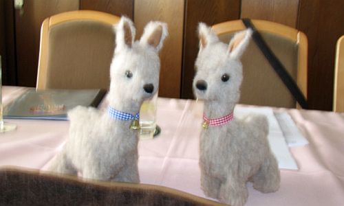 Bildern der eigenen Alpaka- oder Lamaherde sowie kleine Plüschlamas.