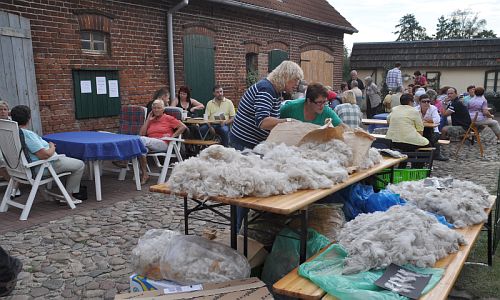 Am 3. Oktober 2011 organisierte der ALZVM unter der Leitung von Heidelinde Böhland-Rühlich das 1. Mitteldeutsche Alpakawollfest unseres Vereines in Zernitz. Auf dem romantischen Innenhof der Familie Rühlich trafen sich am Vormittag 22 interessierte Teilnehmer zum Faserseminar mit Frau Dr. Ilona Gunser. Im speziellen ging es um Faserqualitätsmerkmale, Faserbeurteilung und die Erläuterung von Faserhistogrammen. Im praktischen Teil wurde den Teilnehmern die Sortierung und Vorbereitung der Vliese zur Faserverarbeitung und Vliesbewertung demonstriert.